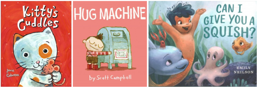 In the week before Valentine’s Day, I wanted to do something with the concept of love, but not tie it to the holiday itself. Hugs seemed like a good option. We talked about the different ways to show love and affection, but I also thought it was important to spend a little time talking about consent and the understanding that not everyone will welcome a hug. Thankfully, there have been a few children’s books that hit on this concept recently, so I was happy to feature two of these.