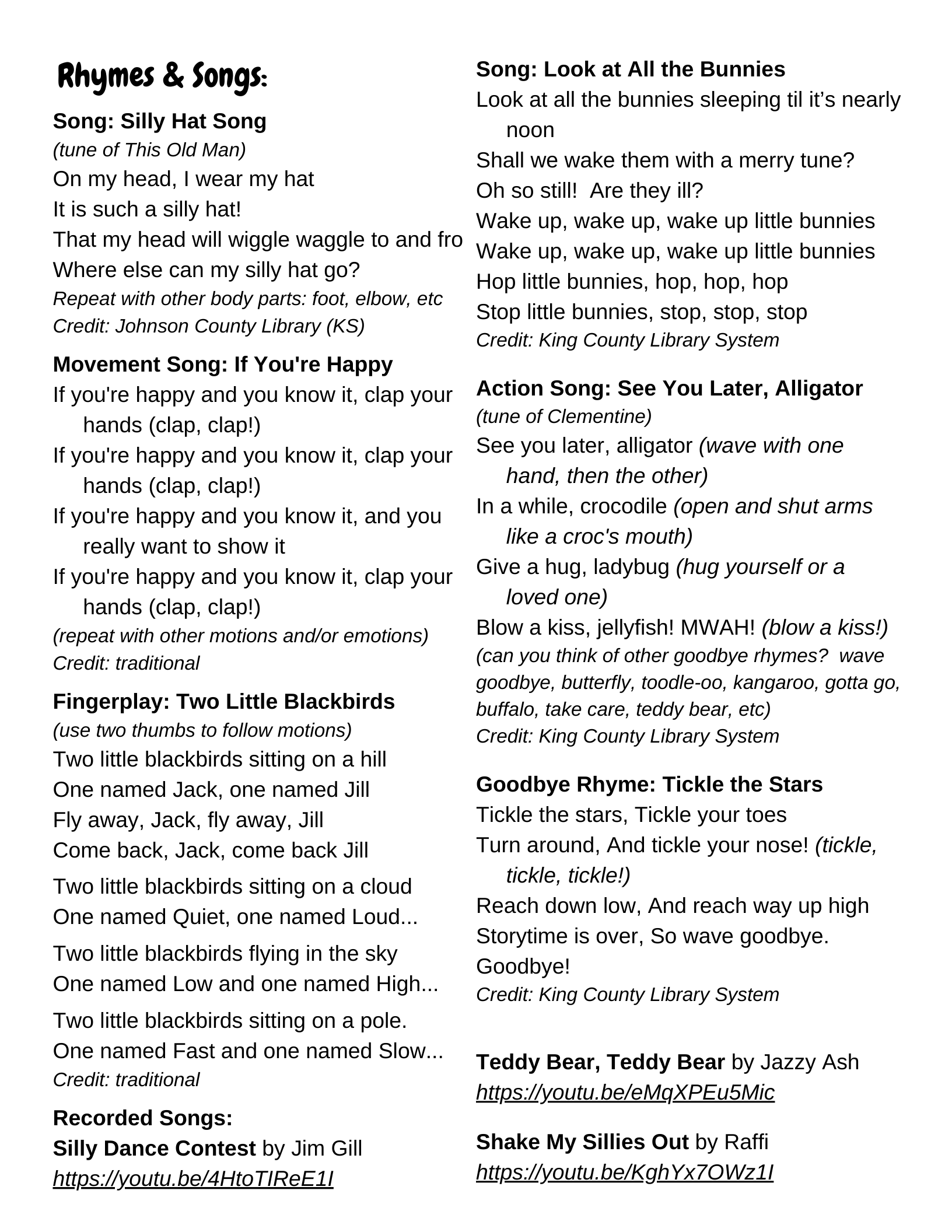 In the virtual version, I played a ukulele song instead of the recording, and used animals from the books we read: