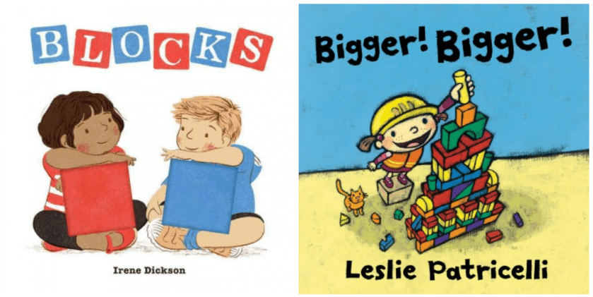 My storytime groups sometimes seem to struggle with the actual books in storytime. I never had this issue with books pre-pandemic. At that time I was serving a wider audience (up to age 5 instead of up to 3.5 now), but even the younger kids seemed to have more attention span. So, when I see a book that I think will be a good fit for my group, I try to build a theme around it. This time, I was looking at books nominated for my state’s Early Literacy Award, the Firefly. A nominee from a few years ago seemed like a fun candidate: Blocks by Irene Dickson. With it, I could create a theme that’s a little unusual – building blocks – but with the ability to expand into things like shapes and construction if blocks was too narrow. Turns out I was able to stay mostly with blocks in rhymes and songs, anyway. I pulled out all our block-like toys for playtime, and it was gratifying to see all the kids having lots of fun with building.