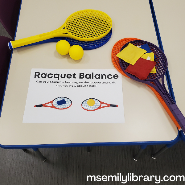 We are back to indoor storytimes after a lovely summer outside, and I started with a Sports theme. I’m not much of an organized sports person myself, but I recognize all the good that can come from involving kids in sports and promoting physical activity for fun. Add in all the excitement that comes from the 2024 Paris Olympics and it was a great theme to explore. Plus, I found a bunch of kids sports equipment in our library storage from a long-ago grant; I’m always keen to use what we have.