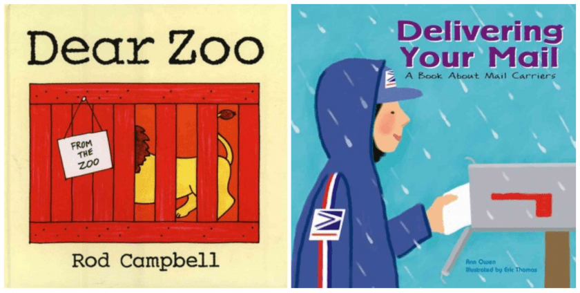 So this isn’t my favorite book about the mail, since it really doesn’t directly show letters or a postal carrier, but for the youngest class, it was the best option I had. They did love the flaps and seeing the animals!