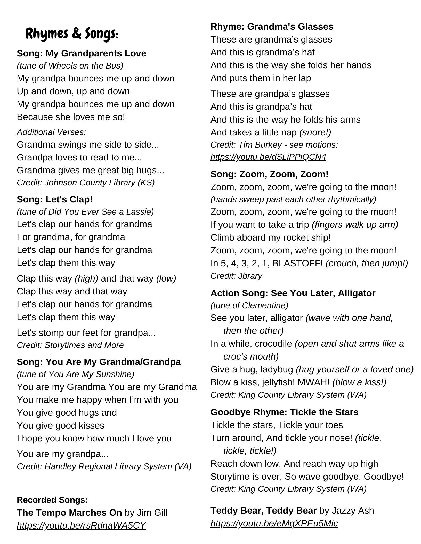 Storytime Handout: