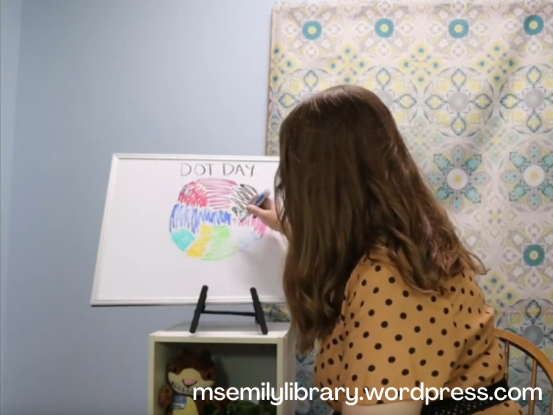 This is honestly very simple, but I always get a lot of comments from grown-ups about how cool it is and how they might be able to do it at home. (I LOVE hearing that they’ll adapt what we do at the library at home!) I add small craft sticks to an ice cube tray and put in a little liquid watercolor paint and fill the rest with water. I think it could easily be done with food coloring if you don’t have liquid watercolors, though. I keep the ice cube trays in a cooler in the shade until we’re ready for stations, then get them out to use. They do melt, but usually there’s a bit of ice left by the end of the program. And my groups were quite tidy, so I was able to just refreeze the trays each day and there was plenty of “paint” available for three sessions. Original idea (and photo on the sign) from ARTventurers.