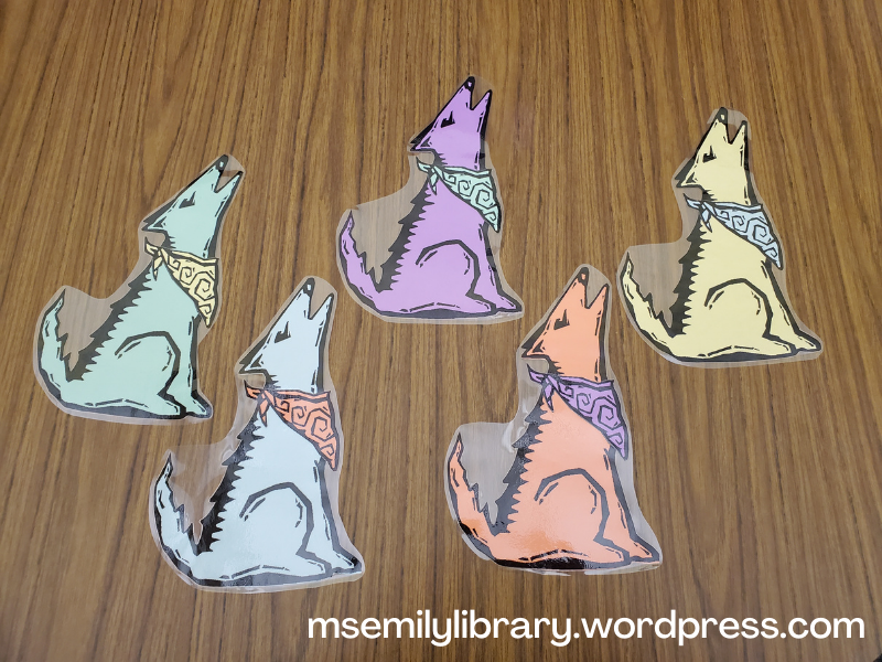 For an easy noisemaker, we decorated toilet paper tubes – I did my sample with regular washable markers, but put out the dot markers day of – they provide easier coverage! I also had foam shape stickers. We filled the tubes with generic cheerios to make the noise and stapled them shut. I made sure to note that it works best if the stapled shut ends are perpendicular to each other, to keep the middle open and prevent the tube from collapsing. I had pre-stapled one end before storytime and provided staplers for caregivers to close them after filling. To make it even easier, you could pre-fill and provide the finished noisemaker to decorate only.