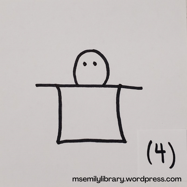 This craft turned out so cute! I was inspired by a photo at Storytime Katie, but the link she provided was no longer in service. I played around and figured out the shape I would need to get a little pocket for your finger. The rest is just circles for the ears, yarn for the tail, and a tiny pompom for the nose. Eyes are just drawn on. I made a template for the mouse bodies and ears, and printed on brown and pink 9×12″ construction paper.