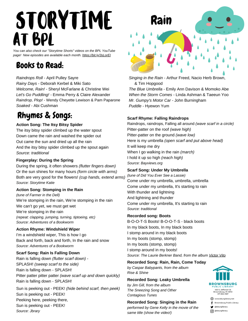 *Lyrics to these songs can be found on the Repeated Songs & Rhymes page.