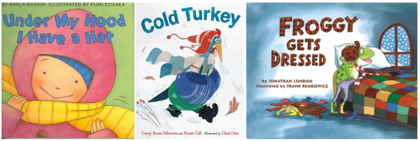 I think I overplanned a bit for this session, and we skipped several things I had on my list, but it’s better to have too much material than too little. My third session was the one I was planning to retell Froggy Gets Dressed in, but – ironically enough – we had some snow and ice and cancelled programming that day!